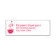 Självfärande frimärke med ett tropiskt tema julflamingo med en rosa julhatt. Under fötterna är en candy cane bouquet med tropiska blommor och rosa söt. En myrsprit på bröstet.