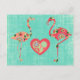 Rosa Flamingo Kärlek-kort - retro patchwork rosa flamingos på en nödlidande grönt-bakgrund.