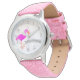 Tropisk roligt och girig! En söt rosa och flamingo tittar på dig. Modern marmor bakgrund. En banderoll för färgaden silver och en mall för ditt namn, vita brev. Grått nummer.