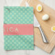 Rosa Flamingo med myntadot av mynttyp Grönt Kökshandduk