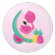 Keramisk dörrknapp med en söt illustration av en rosa flamingo med några vattenmeloner och ananas. Systemet för rosa och grönt färg. Summery och tropisk. Bakgrunden är en ljus rosa vattenfärgsbild.