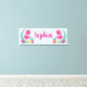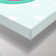 Ett galleriliknande kanvastryck med en söt illustration av en rosa flamingo med några vattenmeloner och ananas. Systemet för rosa och grönt färg. Summery och tropisk. Bakgrunden är en blek grönt färg med vitt polka dots.