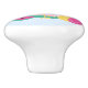 Keramisk dörrknapp med en söt illustration av en rosa flamingo med några vattenmeloner och ananas. Systemet för rosa och grönt färg. Summery och tropisk. Bakgrunden är en ljusblå vattenfärgsbild.