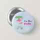 Jag är mormapknappen med en illustration av en mamma (eller mormor!) och baby rosa flamingo som står på en säng av blommigt blommor med blommor med grönt handflatan träd som sväller i bakgrunden. Tropiskt och söt. Bakgrunden är en halvljusblå vattenfärg med lilans ledtoner.