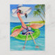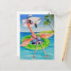 "Beach Babe Flamingo No. 3" Watercolor Art Postcard av konstnären Jean Weiner "Beach Babe Flamingo No. 3" har en rosa flamingo som njuter av en solig eftermiddag på stranden. Hon har på sig sin favorit simmande kostym, solglasögon och sol hatt. Den här vismatiska designen kommer säkert att göra alla flamingon eller älskare-dagar ljusare!