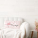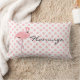 Söt rosa accent dekorativ kudde utförd i en rosa- och vit polka punkt mönster. Bilder av stor rosa flamingo och svart skripttext som läser Flamingo dekorerar båda sidorna av kudden. Anpassa texten så att du kan läsa vad du vill. Det finns caseser för att matcha täcken av duntäcken och kuddar.