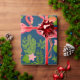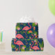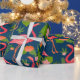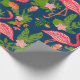 Rosa flamingo-ornament på en stripe-turkos bakåt presentpapper