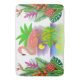 En vacker stor tropisk badmatt med Rosa Flamingo och tropiska blommor