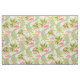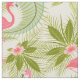 Min ursprungliga vektorbild illustrerar en rad stiliserade tropiska växter, hibiscus blommor, flamingor och paisleyformer, i skuggor av rosa, grönt och ljust akvarier, på antikvita, med en subtil simulerad tygkorna, till ge i designen av en vintage bark trasa.