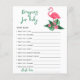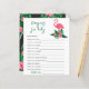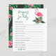 Utformningen av babyduschinbjudan har rosa flamingo med lush grönt löv fronds och tropiska hibiscus blommor. "Aloha Baby". Ett tropiskt blommönster med svart bakgrund färg går bakåt på kortet.