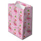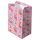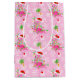 Rosa julflingor med ljus och en jultomtehatt på rosa med snöflingor och fesstigt dekorerade handflatan träd. Visas här på en anpassade presentväska. Du kan enkelt ändra storlek på mönster efter dina önskemål och välja din favoritbakgrund färg. Det är en söt mönster för att fira jul med en tropisk vibe!
