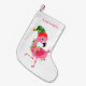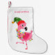 Rosa flamingo personlig liten julstrumpa. Lätt att ändra texten. Färgdesign för utspädda vatten.