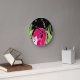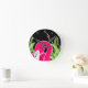 Dekorativ fågelkonst av rosa flamingo på svart bakgrund bland styliserat löv