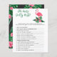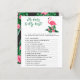 Utformningen av babyduschinbjudan har rosa flamingo med lush grönt löv fronds och tropiska hibiscus blommor. "Aloha Baby". Ett tropiskt blommönster med svart bakgrund färg går bakåt på kortet.