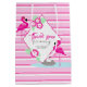 Cute Whimsical rosa flamingo som står på en fot tack vare att du föredrar babyduschpresentväska. Anpassa med din babydusch tack och ditt budskap. Originalgrafik och design av Sarah Trett www.sarahtrett.com för www.mylittleeden.com på zazzle.