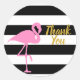 En rosa flamingo står på lämnat. Anpassningsbar finns på högerna i guld-skript faux (inte folie). Svartvit rand går tvärs över bakgrunden.