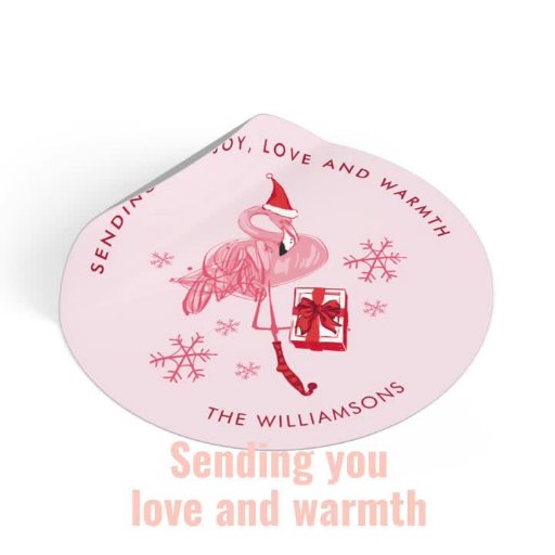 En modern märkre i helgdag med modern typografi med en dekorerad julhatt med rosa Flamingo. Anpassa enkelt den här presentknappen genom att klicka på märkrn "Anpassa".