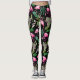 Rosa Flamingo Tropical Botanical Black Background Leggings
