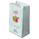Tack för presentväskan med en söt digital illustration med en rosa flamingo med ett ben upphöjt. Stående på en bukett av tropiska hibiscus blommor och löv. En söt fjäril håller på att hovra runt blommorna. Ljust grönt bakgrund.
