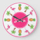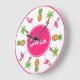 Rosa Flamingo Tropical Island Handflatan Träd Pine Stor Klocka