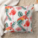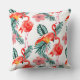 Här är en färgfull tropiskt tematkudde som kommer att göra dina sommardagar ljusare! Den har en mönster av korallelflingor, en lättare rosa hibiscus-blomma och mörk grönt tropiska löv. Mönster placeras på en skarp vit bakgrund. Baksidan har samma mönster som framsidan.