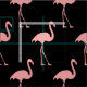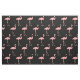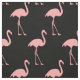 Rosa flamingomönstertextilväv. Anpassningsbar tryckt textilvara. Roligt DIY-projektförnödenheter och tillbehör till vuxnor och barn. Gör egna kläder, dekorationer och mer. Tropiskt fågelmönster med svart bakgrund.