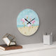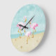 Rosa Flamingos för vattenfärg på stranden Stor Klocka
