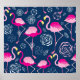 Graphic mönster av rosa flamingos på mörk blått bakgrund Graphic rosa flamingos står ut mot mörk blått bakgrund. Rosa flamingos waltz på ett djupt blått konststadium. illustration, sömlös, dekor, natur, trädgård, svart, löv, silhuett, helgdag, rosa, teckning, fåglar, vackra, formlevande, nya, årstider, dekoration, exotiska, flamingos, yta