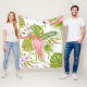 Rosa flamingos, orkidéer: vattenfärgen mönster. fleecefilt