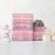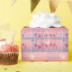 Rosa flamingos står på ett skonsamt sätt längs en strand, vilket återspeglas i lugnen vatten när fullt måne stiger i pastellområdet himmel