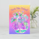 Rosa Flamingos-Personligen Handflatan Träd vid jul Kort