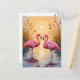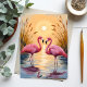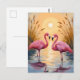 Rosa flamingos solnedgång djurmålning vykort
