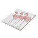 Keramiskt plattor med penna och bläck illustration av tre rosa flamingos. Konstnären, Leah Wiedemer gjorde den här designen med sitt hemland Florida i åtanke. Rosa flamingo är en symbol för tropiska Florida som lever. De här prydnadsplattorna skulle förbättra dekorationen i vilket hem som helst, men köket eller badbadet i ditt strandhus skulle vara perfekt.