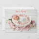 Hon är här" Sweet flicka födelsemeddelande med personligt foto med rosa gingham.