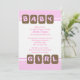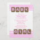 Rosa Flicka är ett inbjudningskort för babydusch vid rosans gräns, där rosa brev dansar kallt på bruna rundade fyrkanter, helst för kommande flicka. © Morgon 6