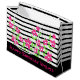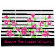 Rosa flög grattis på födelsedagen-presentsäck med svart och vitt rand. Det svarta rand kan ändras till vilket färg som helst. Texten kan ändras till valfritt meddelande för vilket tillfälle som helst. Rosa blommor kan avlägsnas om du vill.