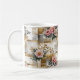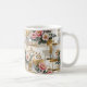 Rosa blombuketter med guld-accenter läggs ovanpå grått och vita fyrkanter i guld, ge i mugg ett retromodernt utseende som du kommer att göra i kärlek!