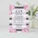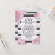 Rosa Flowers & Black, Grått och White Rand Inbjudningar