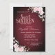 Rosa Flowers Burgundy Sweet 16 Inbjudningar