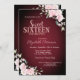 En modern, chic och glamorös 16 med rosa blommor i burgundisk bakgrund.
