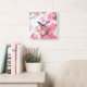 Rosa Flowers Cherry Blommar Blommönster Sakura Fyrkantig Klocka