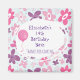Ett tack för din födelsedag med ett sött blommönster. Består av rosa och lila, oregelbundna blommor i en sextiotalsgroovi stil. Fläktade blåa hjärtan, peppar bakgrunden på en blek blå bakgrund. En vit hand plockade-cirkel läggs ovanpå, anpassas efter händelsen namn och tack för texten.