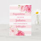 Grattisar på studenten-kortet för guddotter med vackra rosa vattenfärgblommor, rosa och vitt rand mönster och sentimentalt verst.