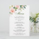 Rosa Flowers Greenery Bröllop Dinner Menu