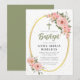 Rosa Flowers Grönt Girl Baptism-inbjudan. Matchande objekt är tillgängliga.
