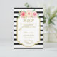 Bröllop OSA med klassiskt svart och vitt rand mönster, guld gräns, rustisk rosa och persikofärgade blommor och handskriven text från stil.