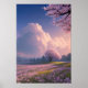 Ett stort fält av ömtåliga rosa blommor, där gräsklippare dyker upp mellan dem, sprider sig så långt som öga kan se. Mitt i fält står en solitär sakura träd hög, dess ömtåliga petter flödar i den mjuka bron. Himlar är klart blått, men i avstånd börjar molnen från mörk samlas, vilket tyder på en annalkande storm.