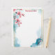blommar med körsbär i den övre, lämnat och nedre högerna av ett gyllene ram, på en blå och vit vattenfärgsbakgrund, gör denna perfekt till papper för din korrespondens, nyhetsbrev eller inbjudningar. Ett vackert asiatiskt tema.