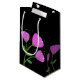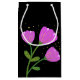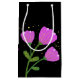 Den har en enkel, handritad blomdesign i rosa med guld-folie som är detaljerad, på svart bakgrund.
