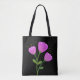 Den har en enkel, handritad blomdesign i rosa med guld-folie som är detaljerad, på svart bakgrund.
